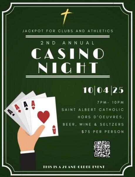 Casino Night at St. Albert for the SA Clubs & Activities Fund: 7pm ($75) (Click here to purchase tickets)