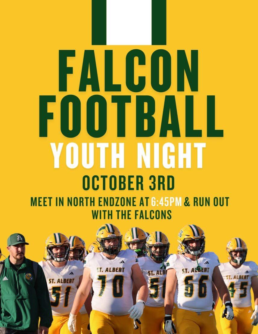 Pre-Game: Youth Football Night for 2nd-8th grade; Honoring St. Albert Dad, Jim Ficek for 50 years of officiating.
