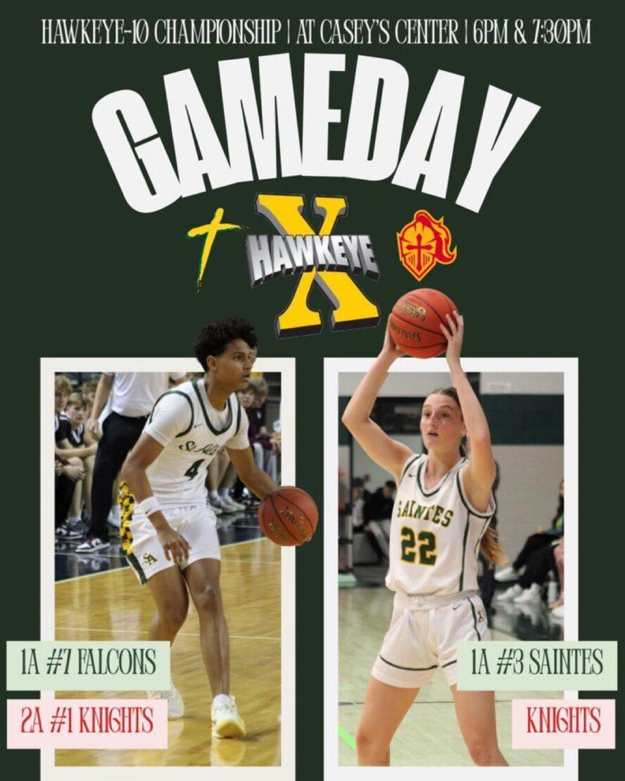 1A #3 Saintes & 1A #7 Falcon Basketball vs 2A #1 Kuemper Catholic at the Casey’s Center in Des Moines: 6 & 7:30pm