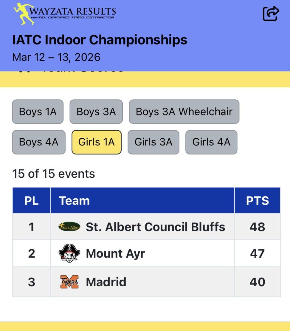 Saintes & Falcon Track at Iowa State Indoor in Ames: The Saintes won and Lili Denton was named Most Valuable Runner!!