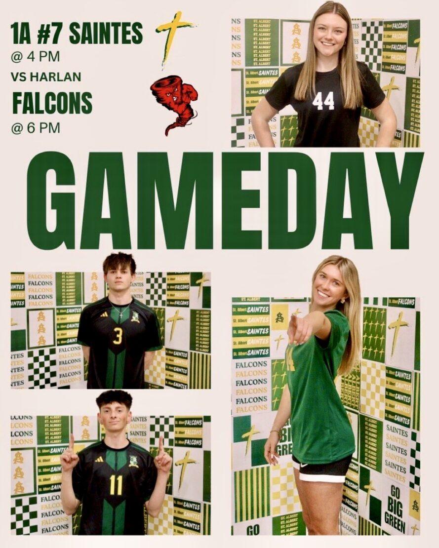 Saintes & Falcon Soccer at the TJ Soccer Boarder Battle: Saintes vs NE Class A #4 Elkhorn South at 8:30am and vs SC East at 1pm; Falcons vs S. Sioux City at 10am on West Grass and vs Sioux City East at 4pm on East Grass.