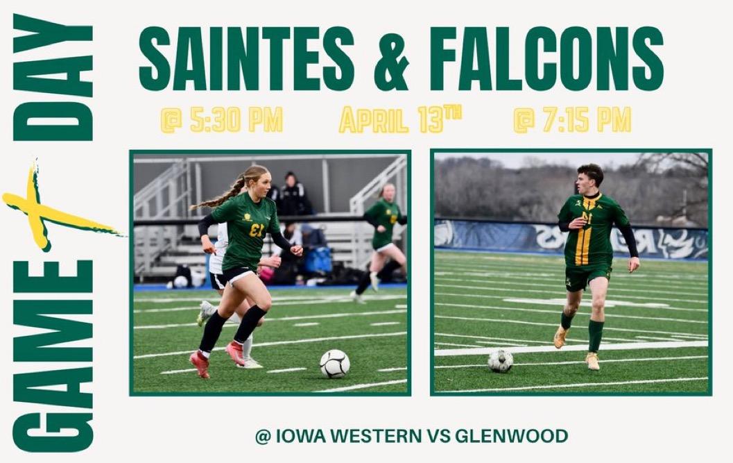 Saintes & Falcon Varsity Soccer vs Glenwood at IWCC: 5:30 & 7:15pm (Watch the Saintes) (Watch the Falcons)