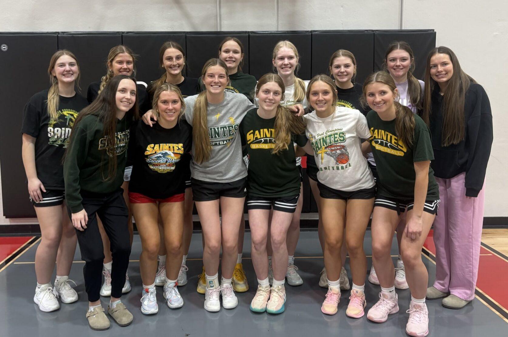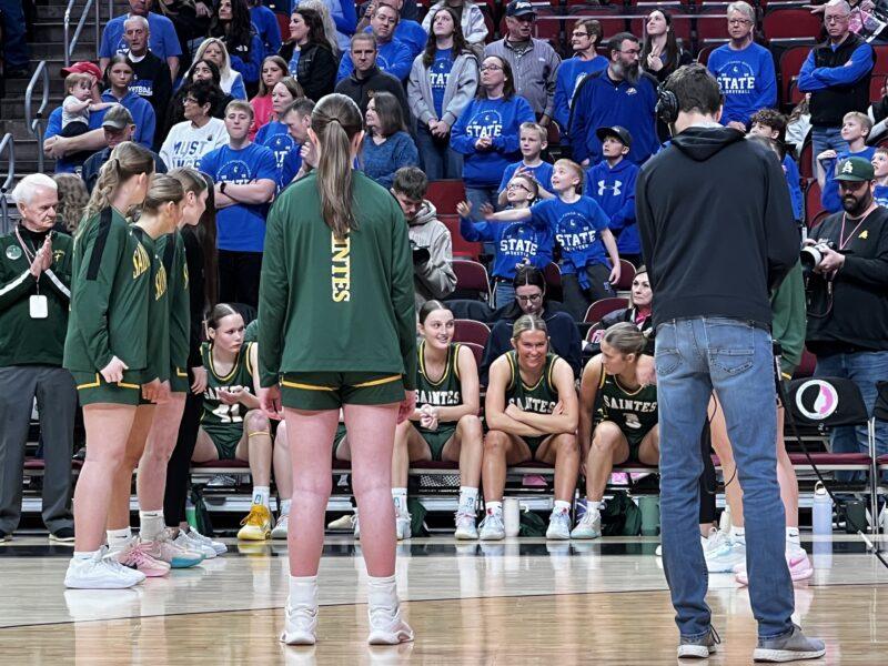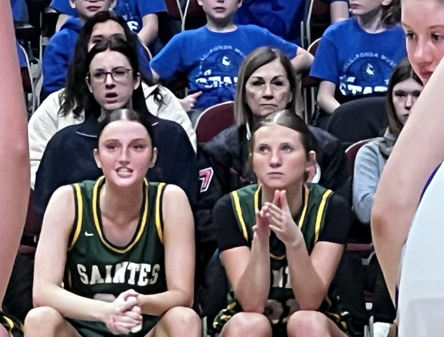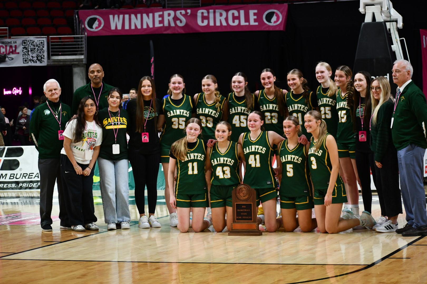 Saintes Basketball in the State Semifinals vs Newell-Fonda: The Saintes lost in a hard fought game, 50-45.
