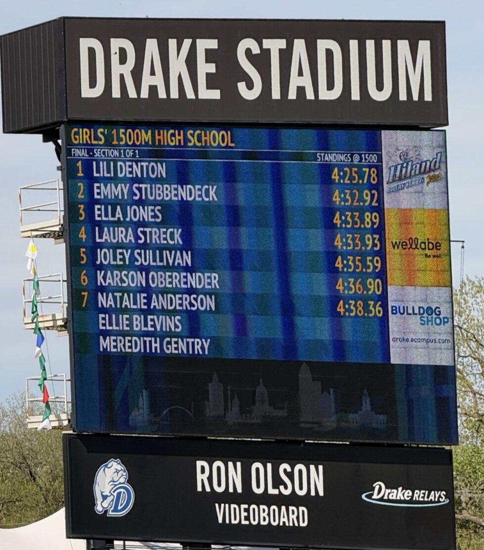 Lili Denton in the Drake Relays 1,500m Final: 4:03pm