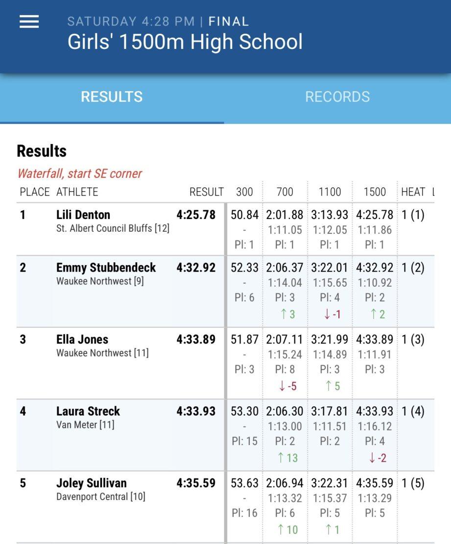 Lili Denton in the Drake Relays 800m Final: 1:44pm
