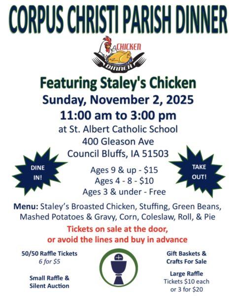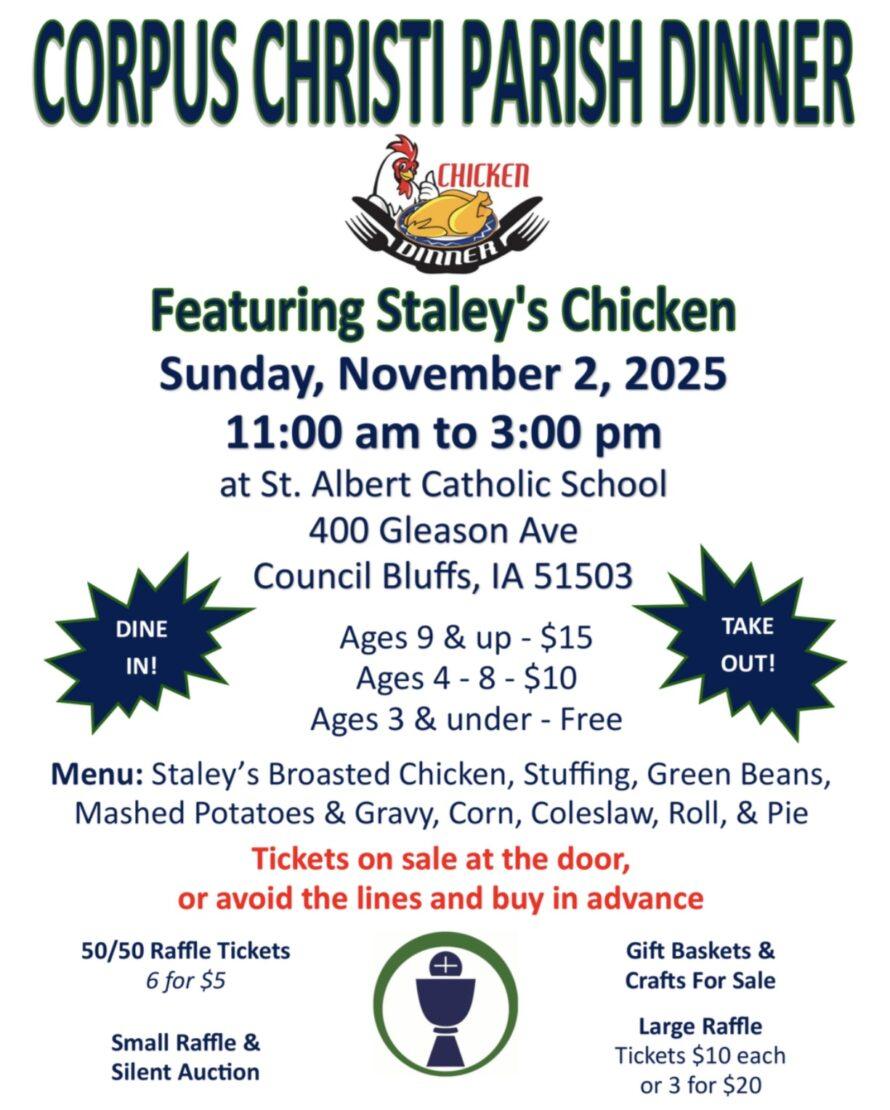 Corpus Christi Parish Chicken Dinner at St. Albert: 11am-3pm ($15 & $10)