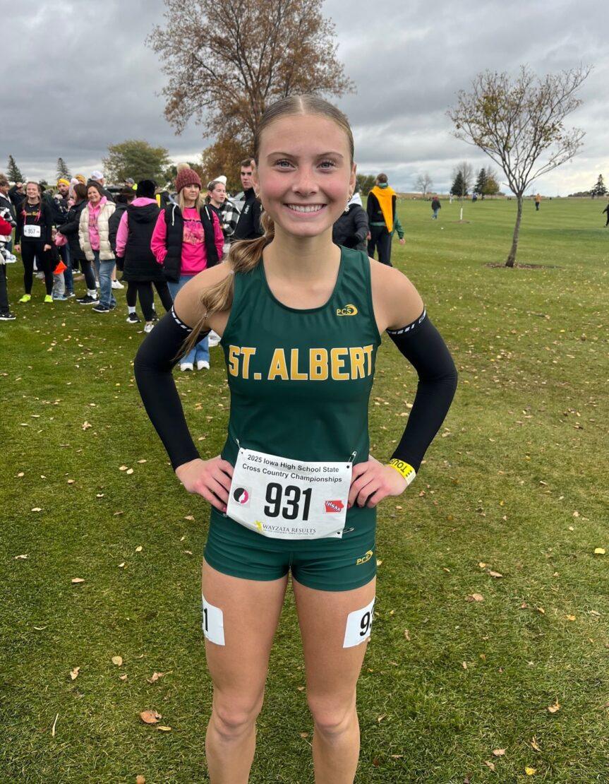 What makes it even more impressive? Lili was sick earlier this week and had to miss school and her final volleyball match — yet still went on to dominate. She finishes her two-year cross country career undefeated (17-0) and becomes St. Albert’s first ever back-to-back State Champion. She has just cemented her place as one of the greatest high school cross country runners in Council Bluffs history.