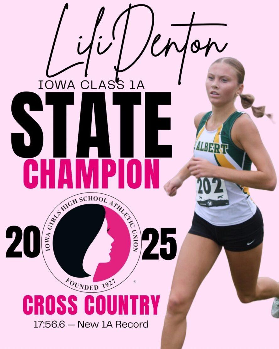 Senior Lili Denton goes BACK-TO-BACK as the 2025 Class 1A State Champion, breaking her own state record with an incredible time of 17:56.6 👑💪